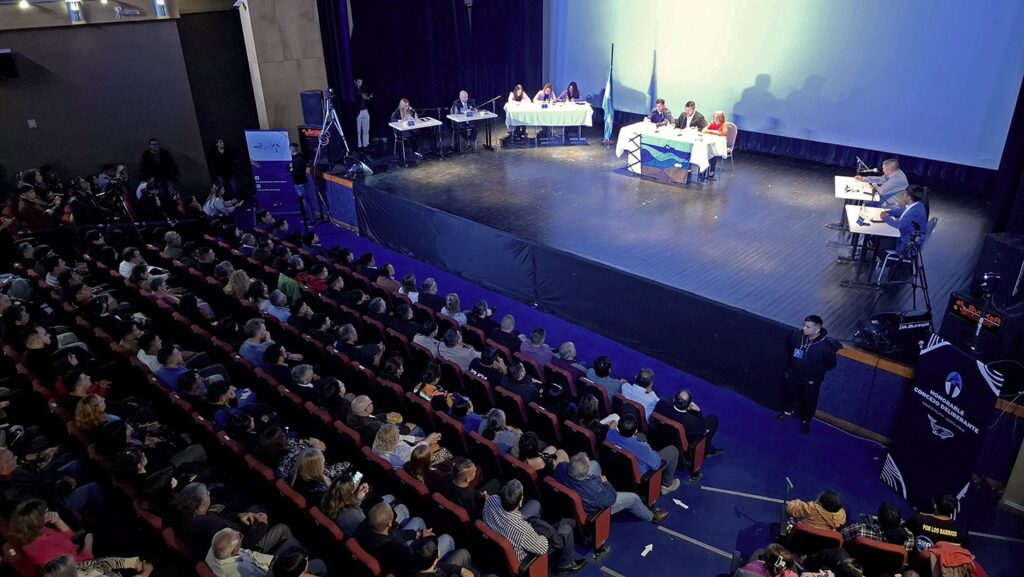 La sala del cine municipal se vio colmada de autoridades, vecinos, instituciones intermedias y público que se manera respetuosa y en un ambiente cordial y ameno escuchó atentamente el discurso del intendente, en el que además anunció: El cobro de una tasa por la circulación de la flota pesada por la ruta nacional número 3, ordenamiento del tránsito en el centro de la ciudad, y la rotación de vehículos, con el sistema de estacionamiento medido, desarrollo de la Zona Franca comercial y la realización del primer Foro pesquero de la región, entre otros anuncios.